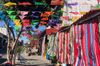Youโll find several places to eat close to the market, and thereโs often live music at the weekends too. Donโt forget your camera as you can get spectacular photos of the brightly colored textiles and arches covering the walkways. Snap a picture of the wishing tree decorated like a parasol at the entrance.